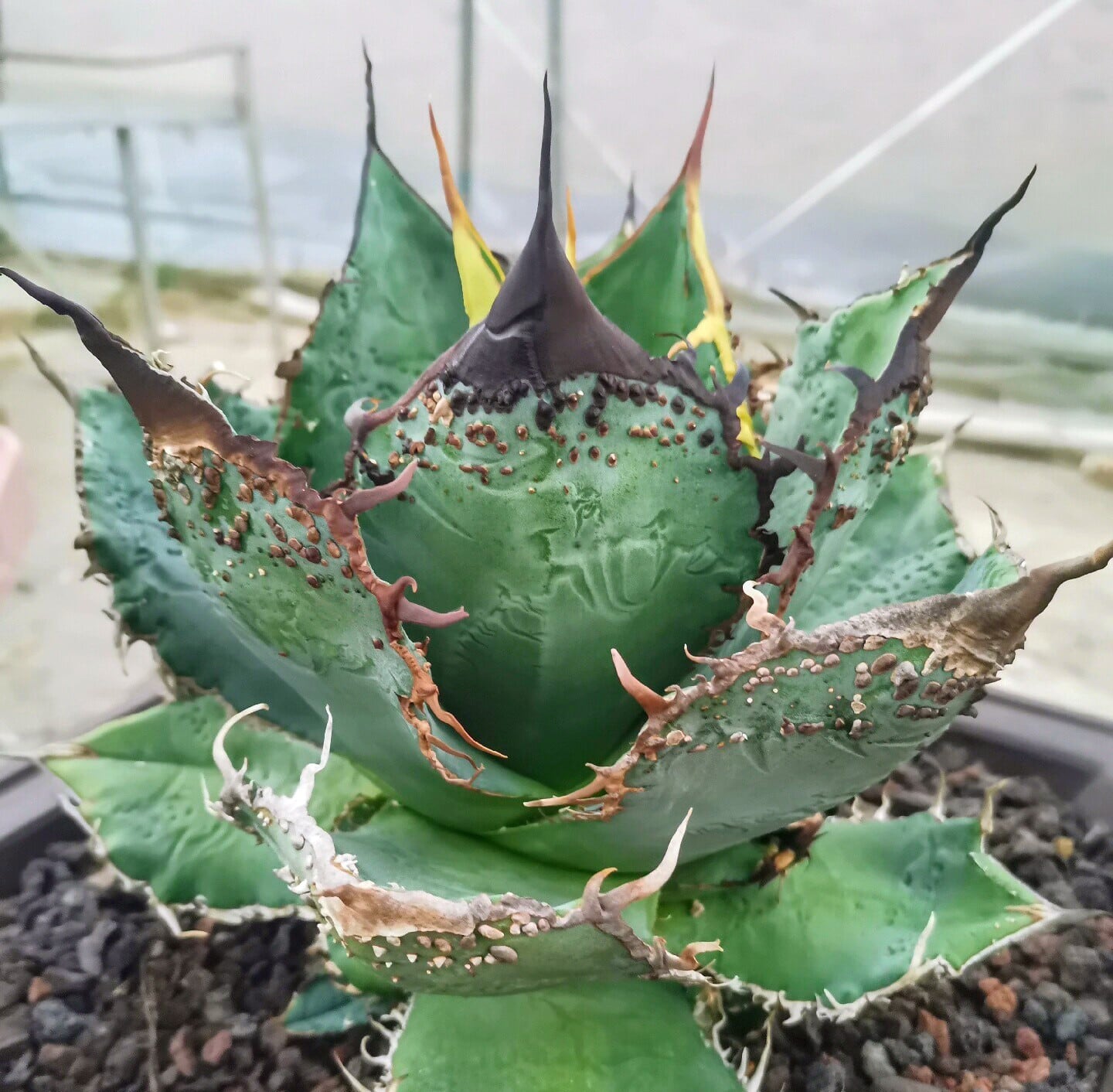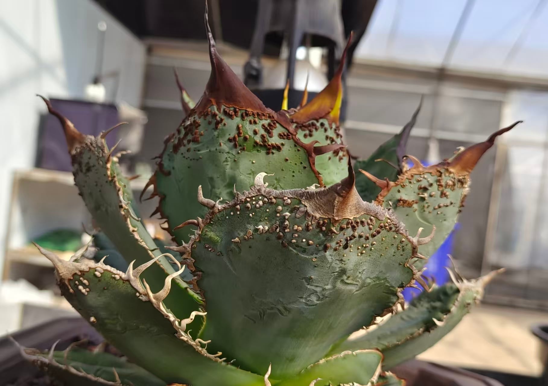 本株は、中国アガベ界屈指の世界的ブリーダー・Lan CaiHe(蘭采和)氏による渾身のマスターピースです。